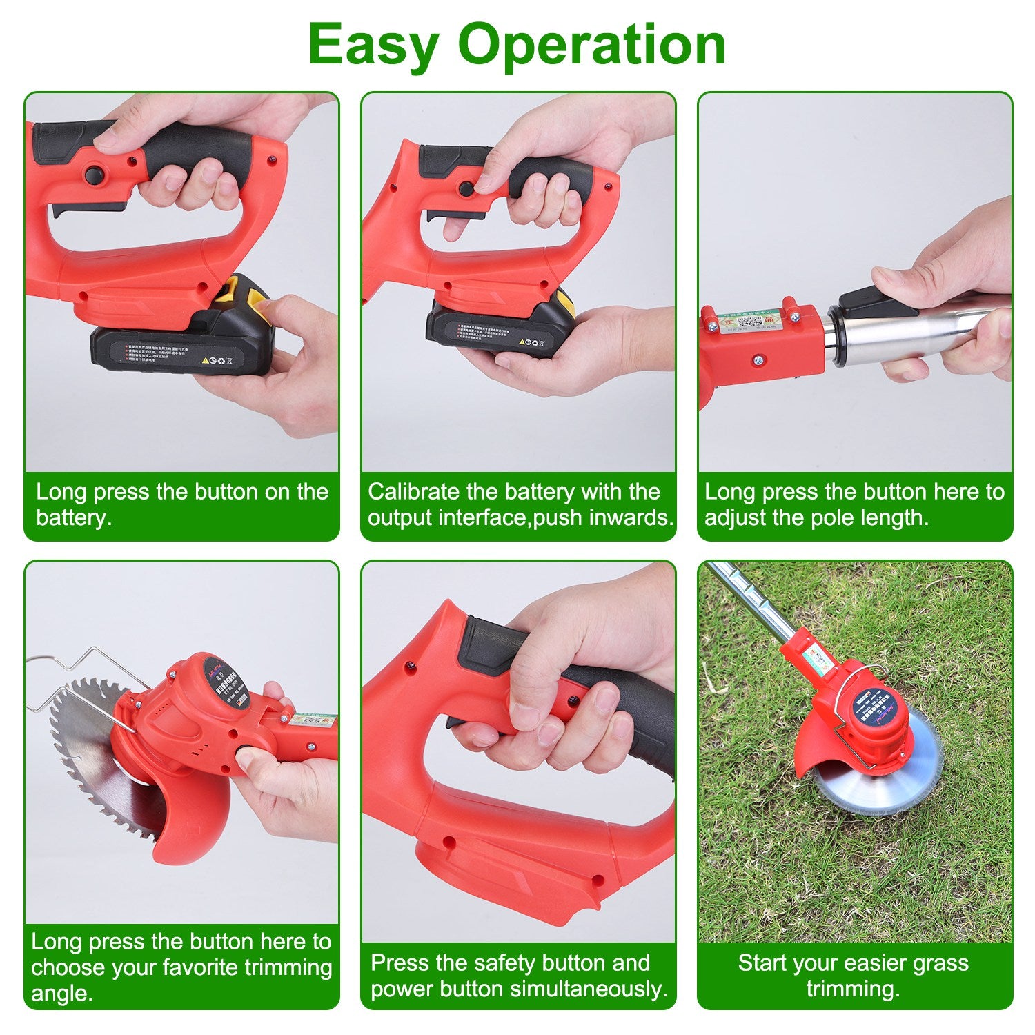 Keep your lawn, yard, or garden looking pristine with this cordless adjustable telescopic grass and weed trimmer. Featuring a powerful 8000 RPM motor, this trimmer provides reliable cutting strength with an ergonomic, lightweight design for comfort and control. The adjustable pole and auxiliary handle allow for customized use, while the 60° trimming angle helps reach hard-to-access corners with ease. Includes multiple blade types for trimming grass, bushes, and small crops, along with two rechargeable batteries for extended use without cords getting in the way.